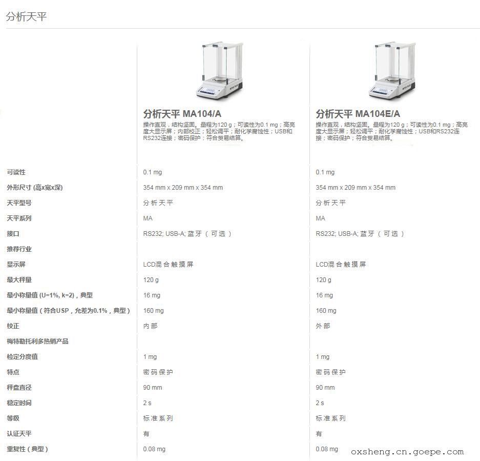 品牌:梅特嘞 型号:MA104E/A 加工定制:否 称量范围:220 g 可读性:0.1 mg 秤盘尺寸:90 mm 外形尺寸:354*209*354 mm 多种接口