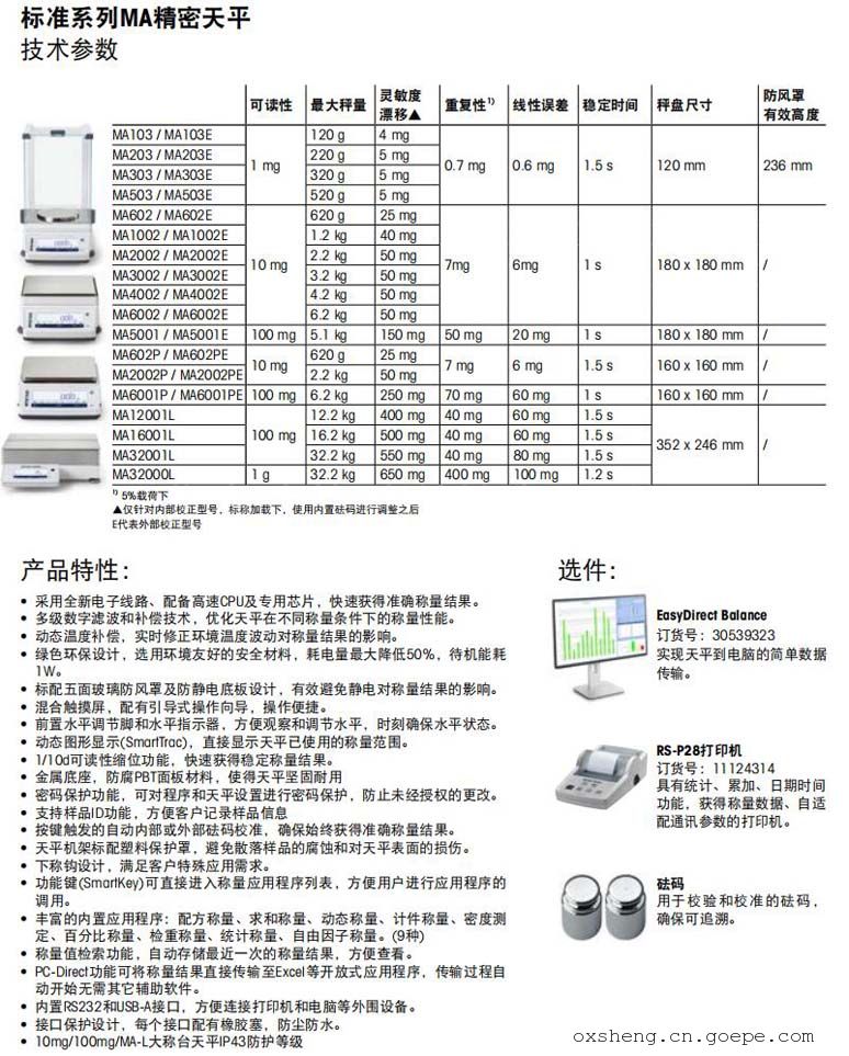 品牌:梅特嘞 型号:MA303E 加工定制:否 称量范围:220 g 可读性:1 mg 秤盘尺寸:90 mm 灵活的服务产品